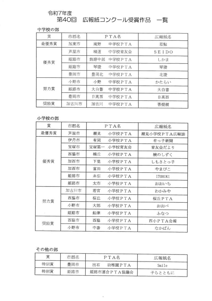 令和7年度 第40回兵庫県内小・中学校PTA広報紙コンクール実施要項